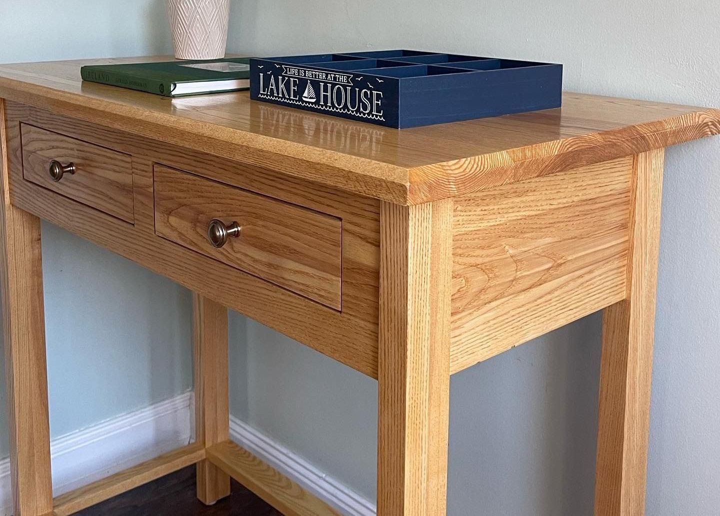 Console table, built from Ash wood, with traditional drawer pulls and finished with a poly.